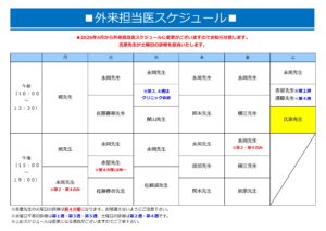 4月から外来担当医スケジュールに変更がございますのでお知らせ致します。